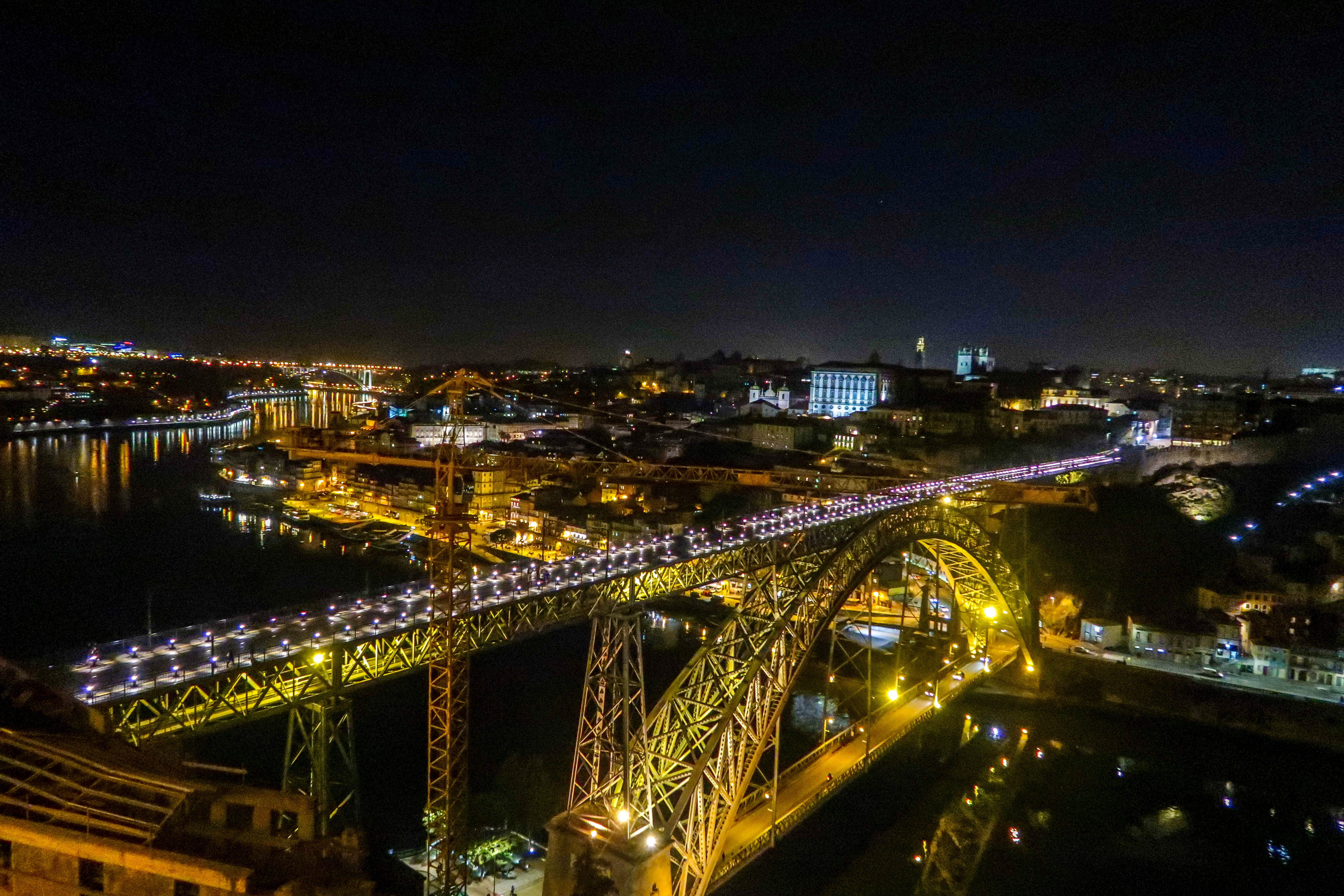 포르투의 야경은 낮과는 또 다른 매력을 지니고 있습니다. 루이스 1세 다리는 밤이 되면 화려한 조명으로 물들어 더욱 장엄한 모습을 보여줍니다. 다리 위에서 바라보는 강과 도시의 야경은 낭만적인 분위기를 자아내며, 사진 찍기에도 완벽한 장소입니다. 특히, 리베이라 지구에서 다리와 도시의 불빛이 어우러진 풍경은 포르투의 밤을 잊을 수 없는 순간으로 만들어줍니다.